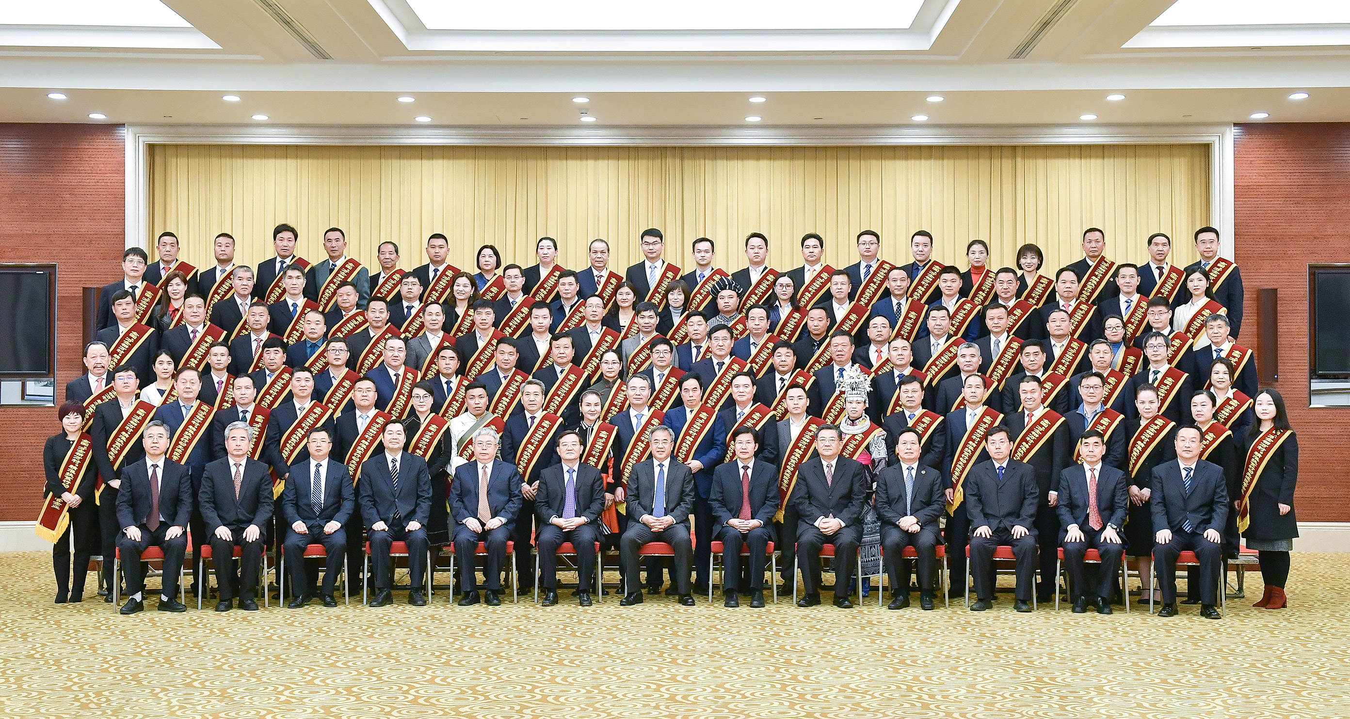 會(huì)前,中央政治局委員、國(guó)務(wù)院副總理胡春華接見“萬(wàn)企幫萬(wàn)村”精準(zhǔn)扶貧行動(dòng)先進(jìn)民營(yíng)企業(yè)代表并合影。