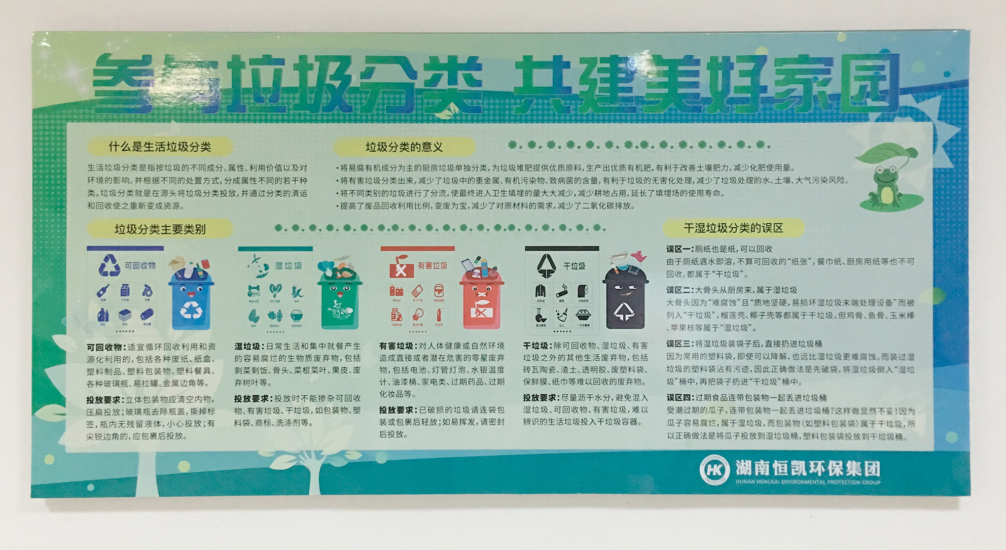 近年來,由于社會經(jīng)濟(jì)的快速發(fā)展和城市化進(jìn)程不斷加快,長沙高新區(qū)的生活垃圾已持續(xù)呈井噴式增長,垃圾分類已經(jīng)勢在必行。垃圾分類,從我做起。恒凱環(huán)保在此呼吁大家一起學(xué)會垃圾分類,積極參與到垃圾分類的行動中來,讓垃圾分類從口號變?yōu)榱?xí)慣,讓我們一起為改善生活環(huán)境,共建綠色和諧家園而努力。