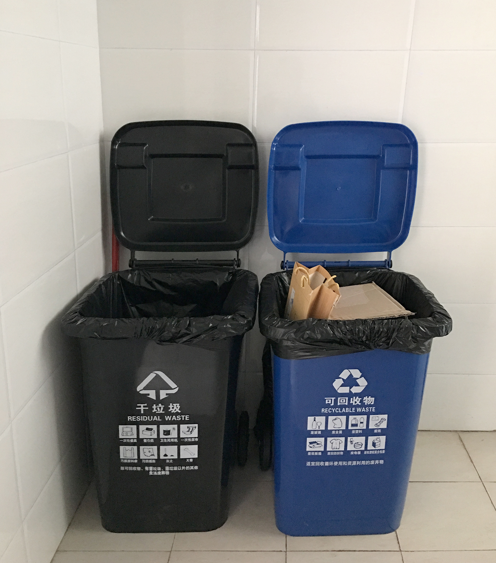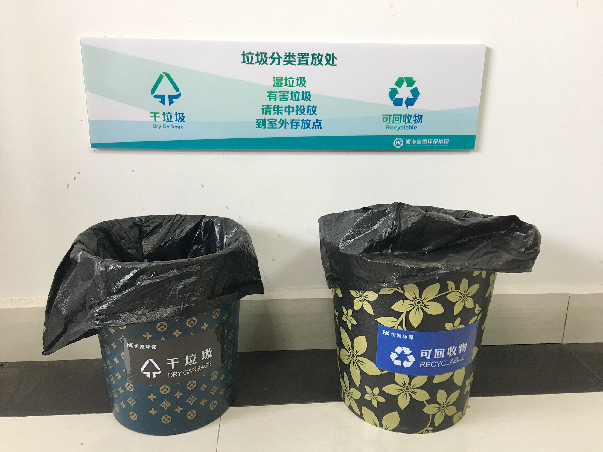 2、在園區(qū)指定位置擺放分類垃圾桶,讓員工自覺參與到垃圾分類中來;