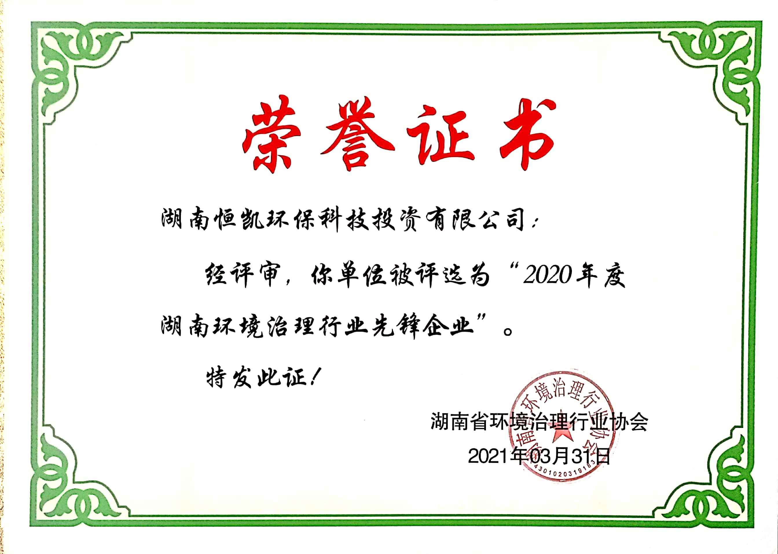 公司動態(tài)︱恒凱環(huán)保榮獲2020年度湖南環(huán)境治理行業(yè)先鋒企業(yè)