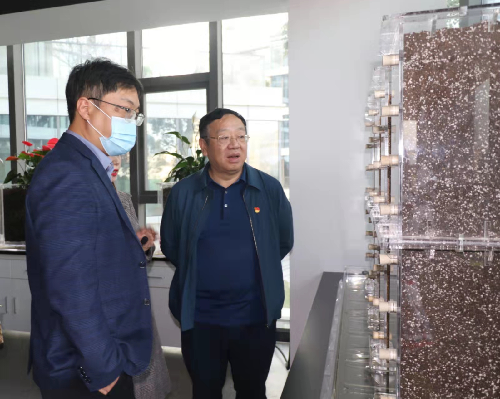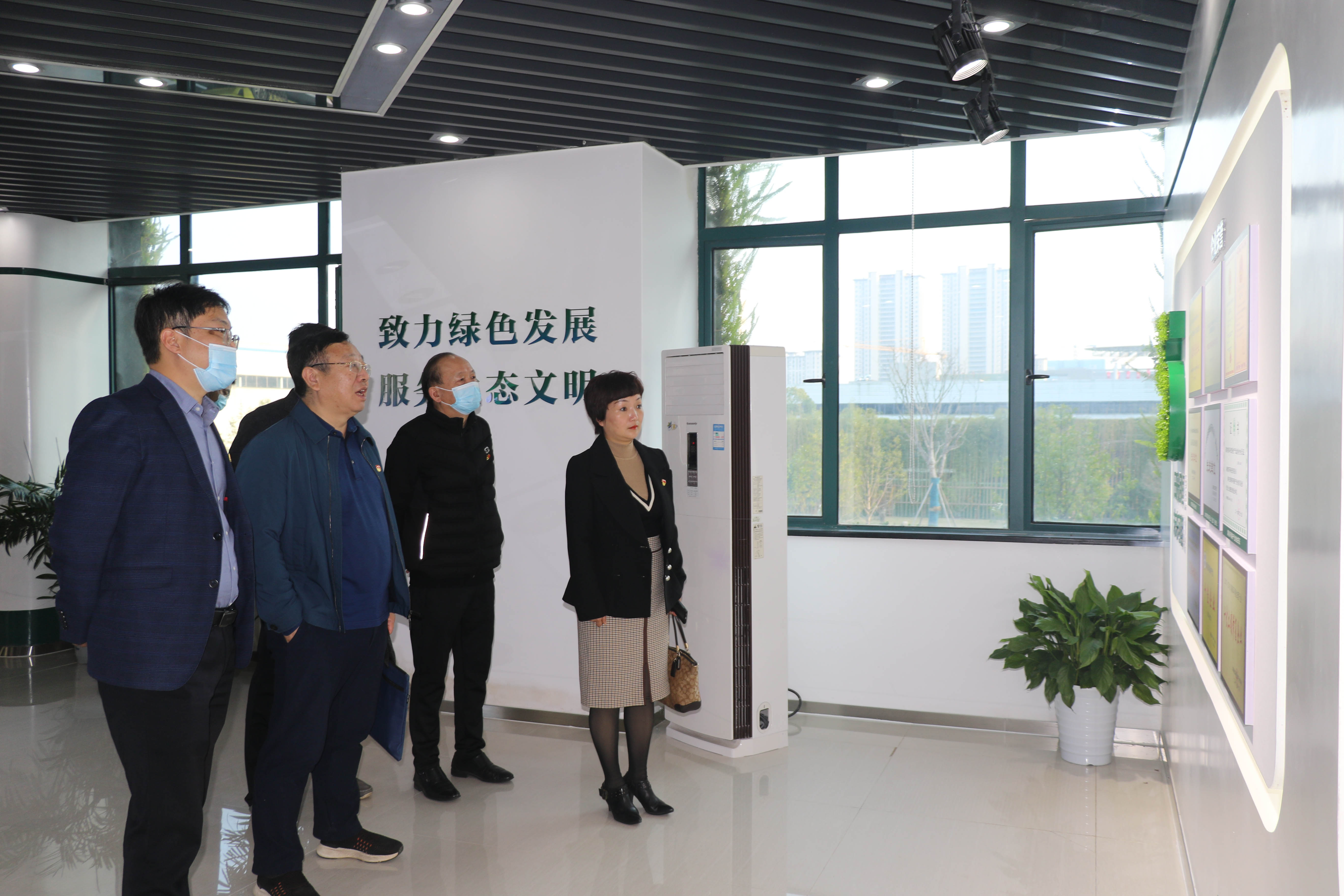 ▲ 劉書記一行參觀黨群活動陣地、立體生態(tài)創(chuàng)新建筑中心