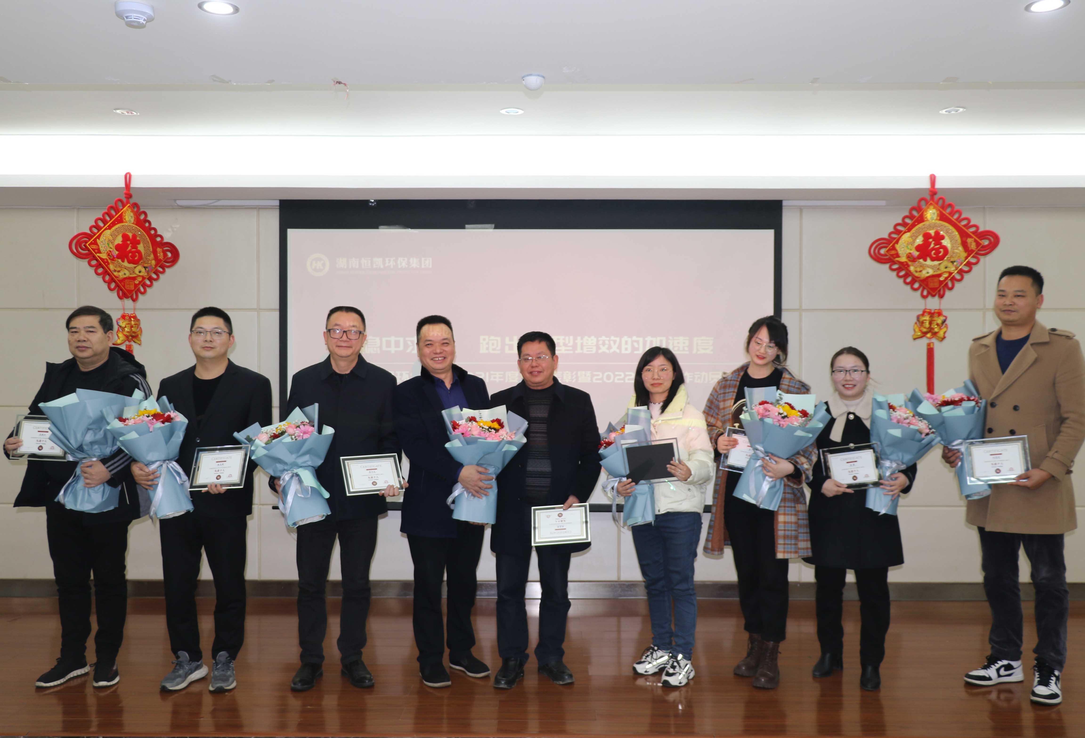穩(wěn)中求進(jìn)開(kāi)新局,砥礪奮進(jìn)譜新篇。1月21日,恒凱環(huán)保2021年度總結(jié)表彰暨2022年度工作動(dòng)員會(huì)在多功能廳圓滿召開(kāi),公司總裁邢漢君,副總裁許國(guó)生、胡澤森、何浪平出席會(huì)議,公司領(lǐng)導(dǎo)及本部員工近100人參加會(huì)議,會(huì)議由副總裁莫唐文主持。